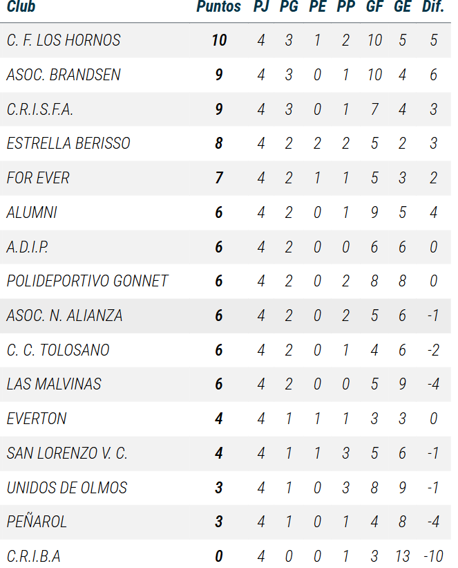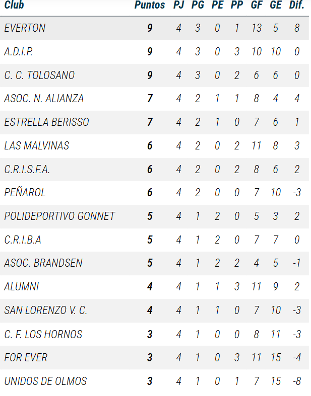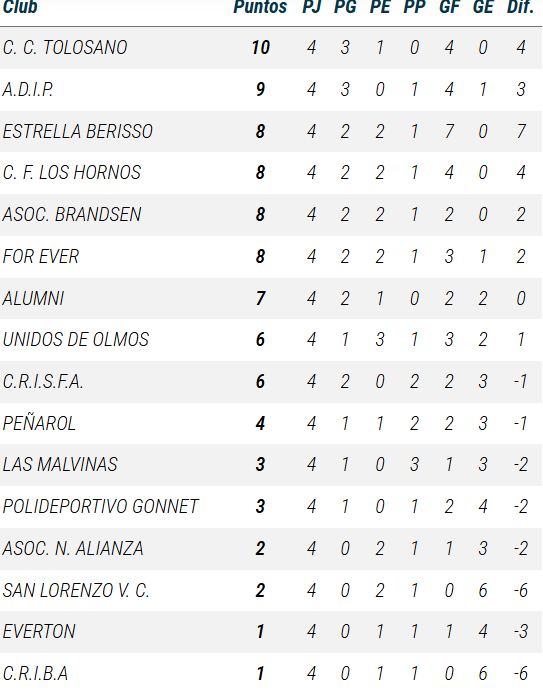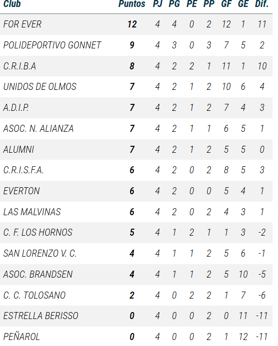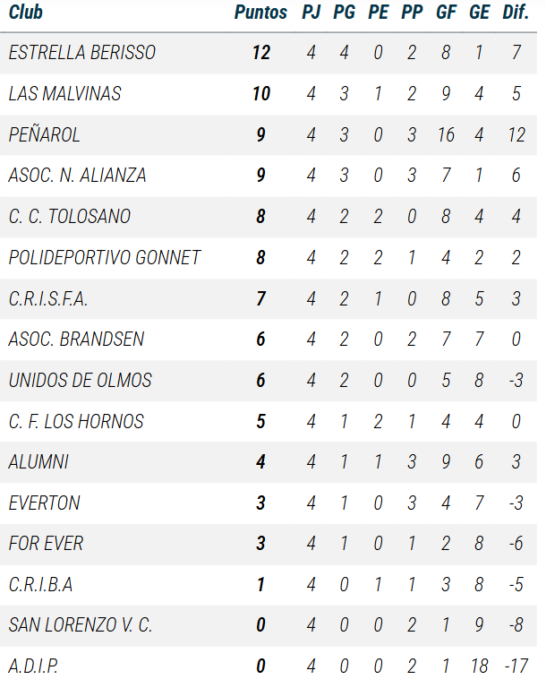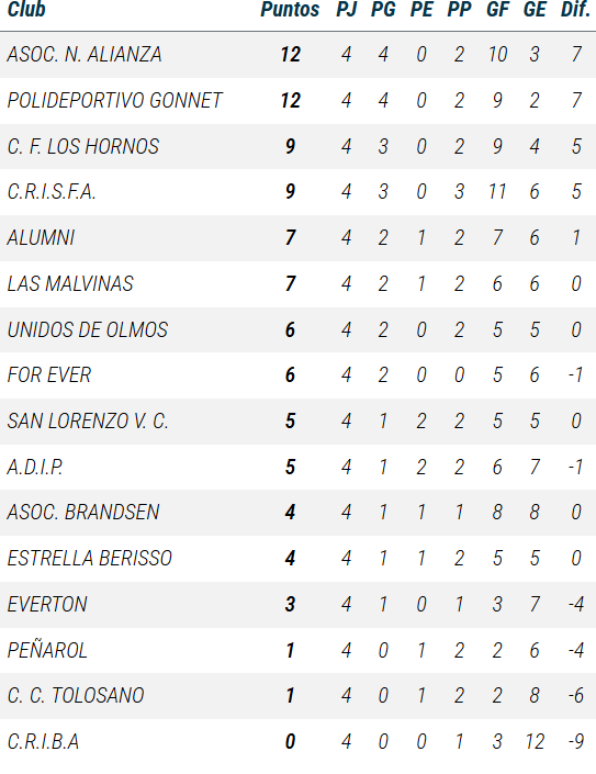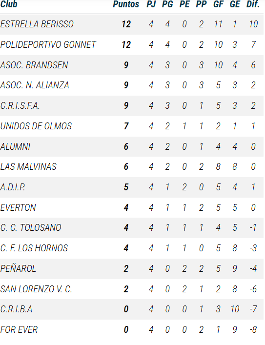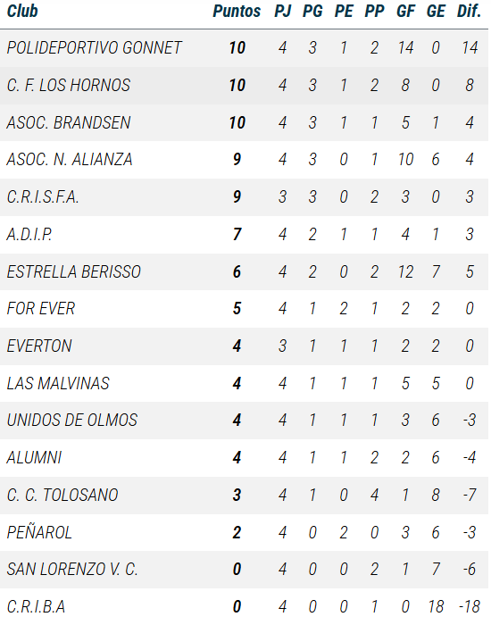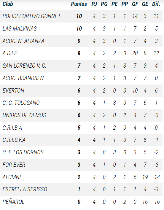 De Primera a PreNovena, así se ubican las divisiones de Gonnet en las tablas de posiciones de la Liga A